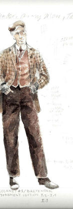 Romance, elegance and grace were major factors in the visual storytelling of this show, especially in the costume design. Fashion and general appearance were important class signifiers in London in 1912. For the elite, it was often said that “London set styles for men,”5 primarily because of tailoring, while Paris led the way in women’s wear. Our characters primarily belong to the upper and lower classes, though clothing during the time for men consisted of relatively similar cuts from class to class: